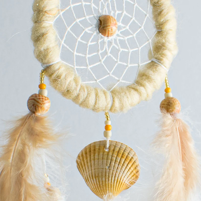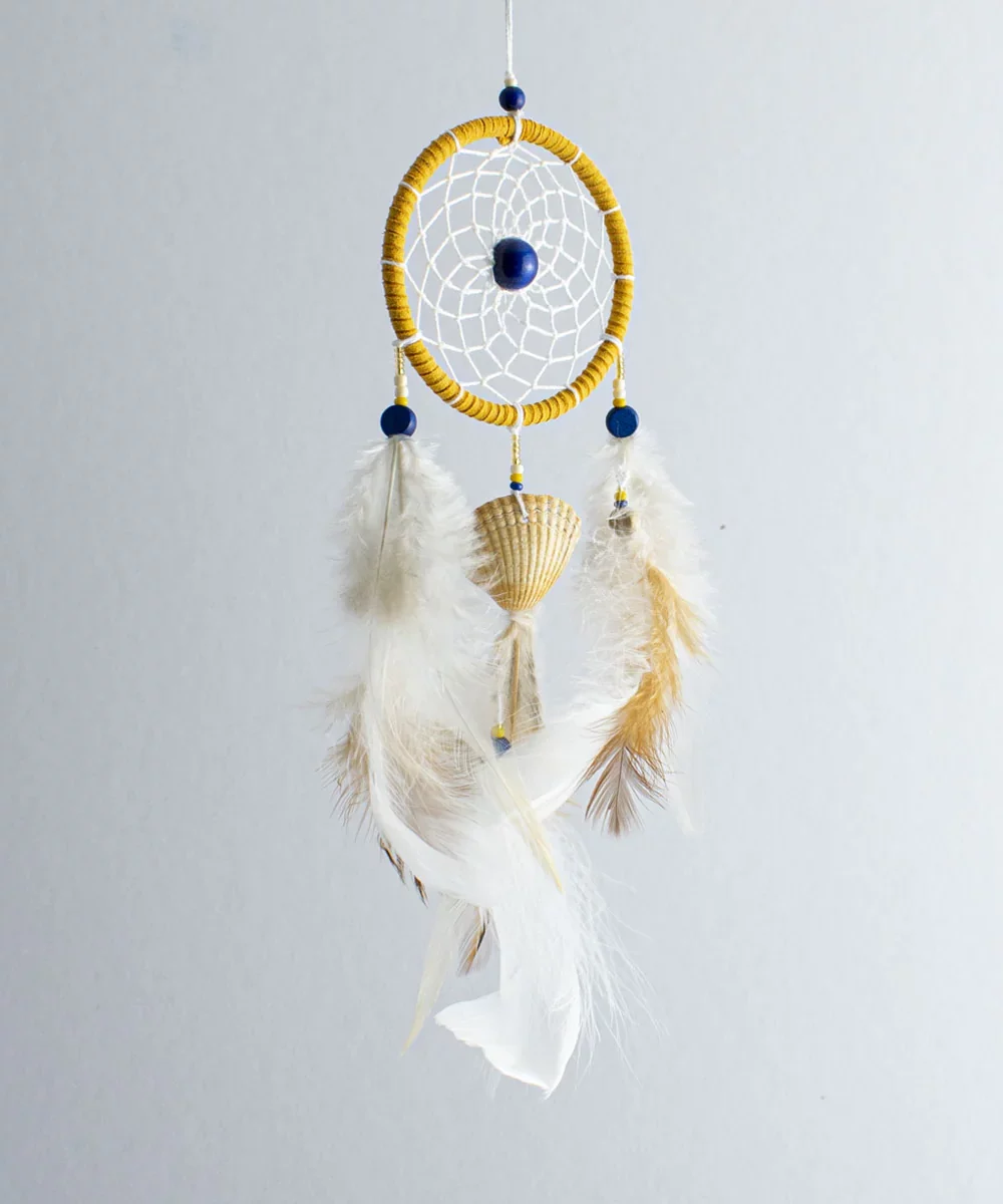 Petit attrape-rêve jaune et bleu “Sable chaud”