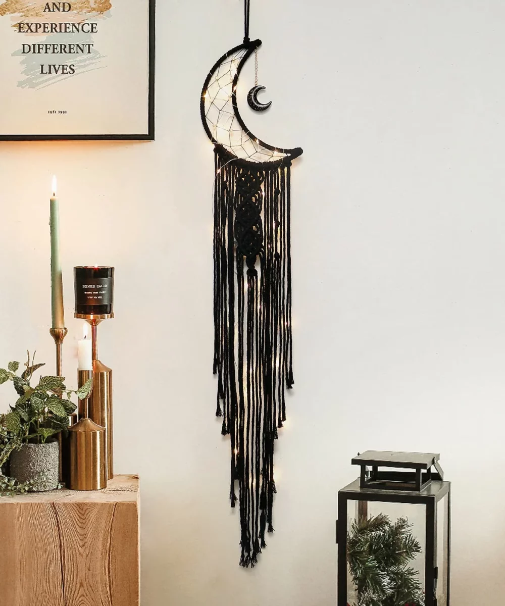 Attrape-rêves en macramé avec motif lune en onyx noir Olivenorma