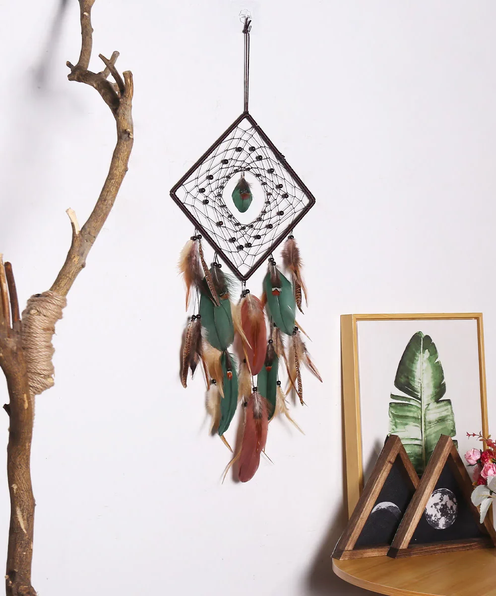 Attrape-rêves en plumes et perles en bois naturel tissées à la main Olivenorma