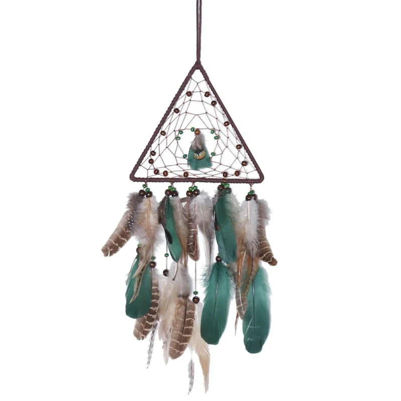 Attrape-rêve triangle et plumes vertes