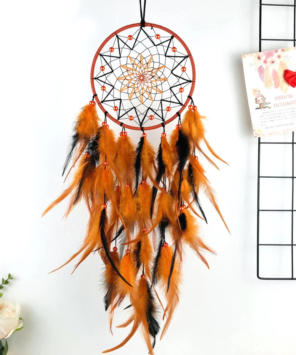 Attrape-rêves amérindiens faits main, noirs et orange, pour Halloween, Olivenorma