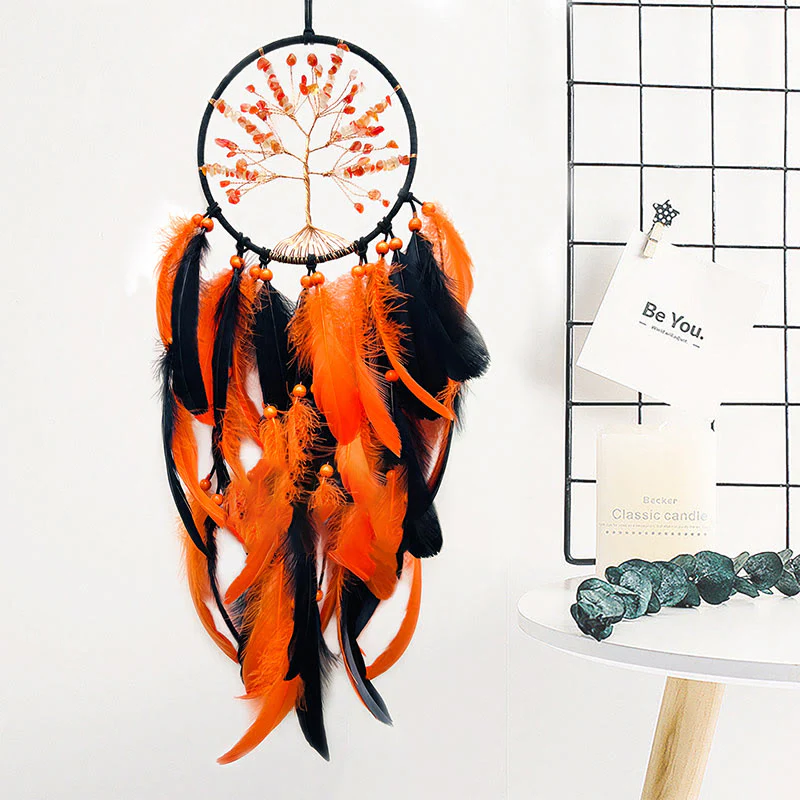 Attrape-rêves d’Halloween Olivenorma en plumes noires et perles orange