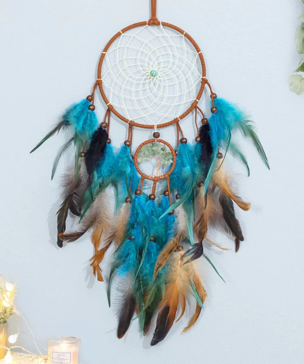 Attrape-rêves en plumes d’arbre de vie en aventurine verte Olivenorma