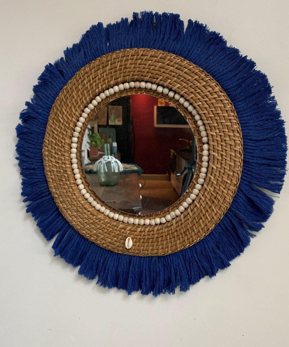 Miroir en rotin et coton macramé tendance BOHEME CHIC