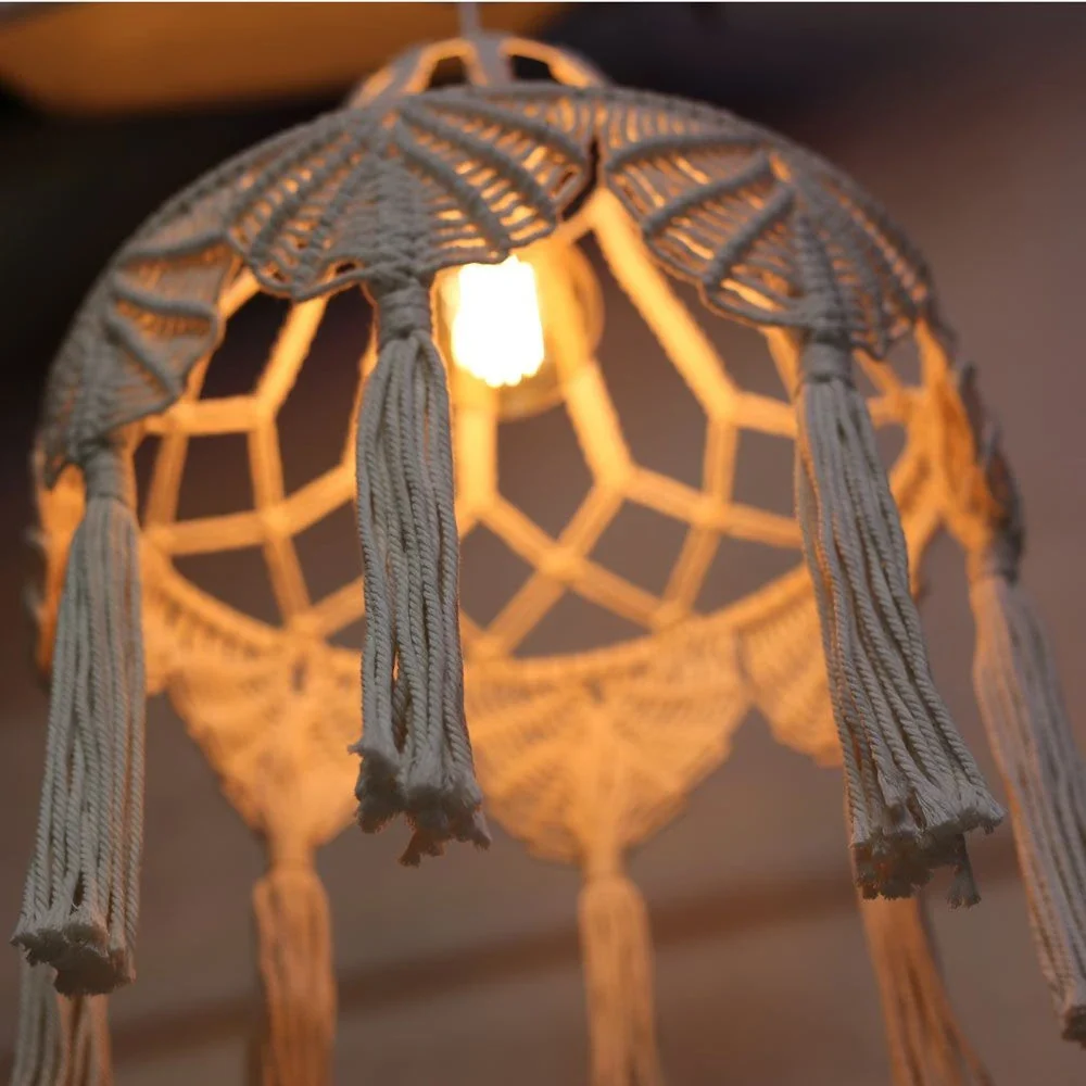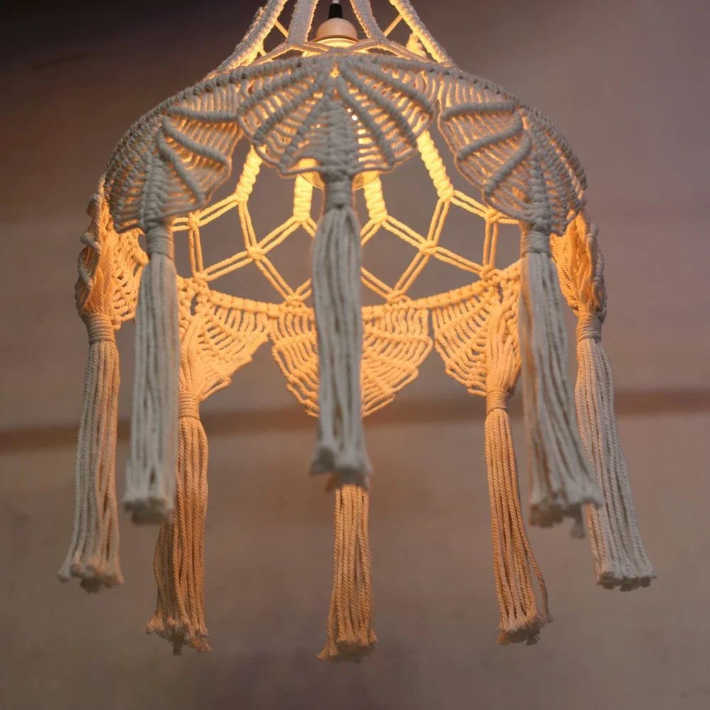Cet abat-jour bohème en macramé apporte une touche de douceur et de convivialité à votre intérieur, créant une ambiance chaleureuse et apaisante dans votre chambre ou salon. Son design, avec ses pompons en macramé, s’intègre parfaitement dans une décoration bohème, diffusant une lumière douce et tamisée.