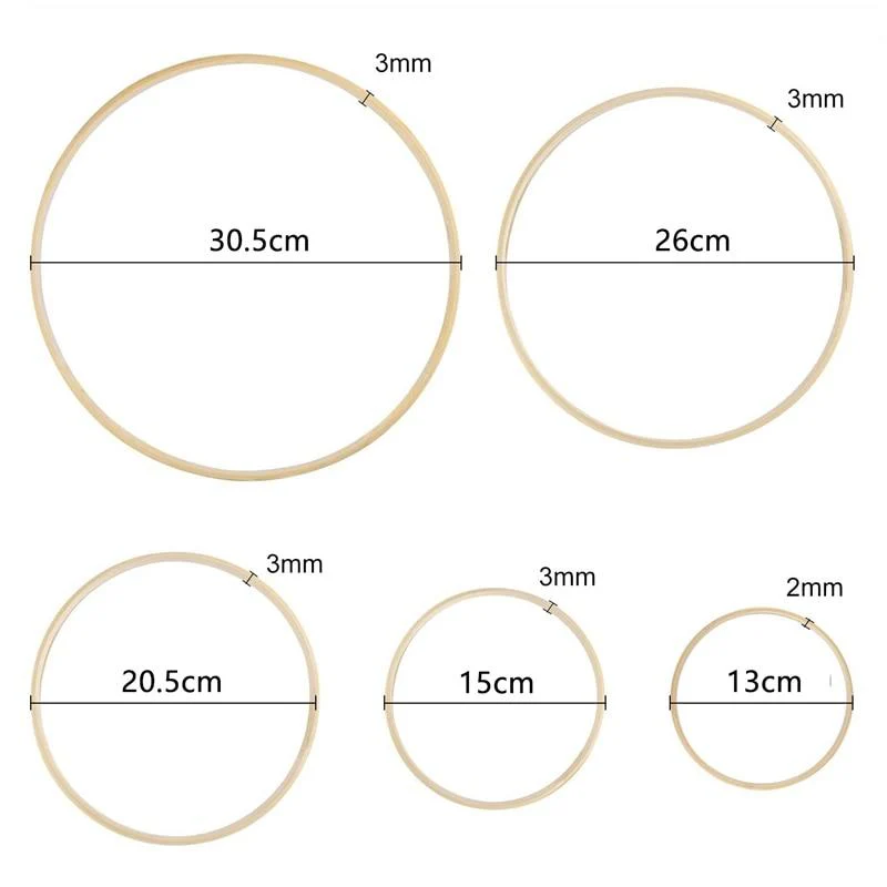 Pour faire vos plus belles créations et réaliser un maximum de macramé, nous vous proposons un lot de 15 anneaux de bois de différentes tailles.