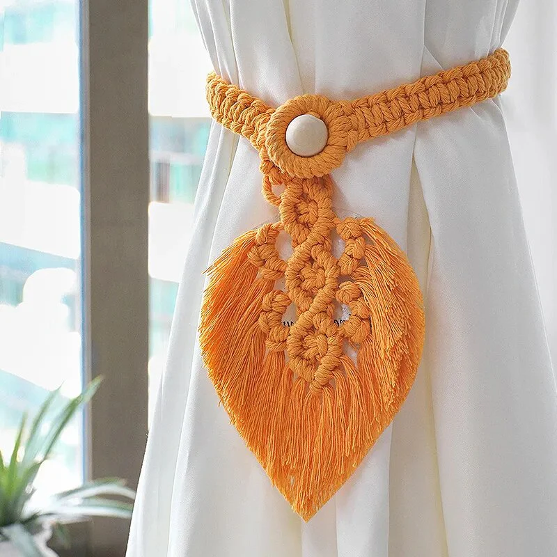Évoquant la délicatesse et la légèreté, la feuille en macramé se transforme en une embrasse parfaite pour rehausser et sublimer les rideaux de votre espace intérieur. Ce modèle, à la fois discret et raffiné, comblera les amateurs de style boho-chic et de tendance nordique. Offrez à vos rideaux une paire d’embrasses à la hauteur de votre décoration intérieure.