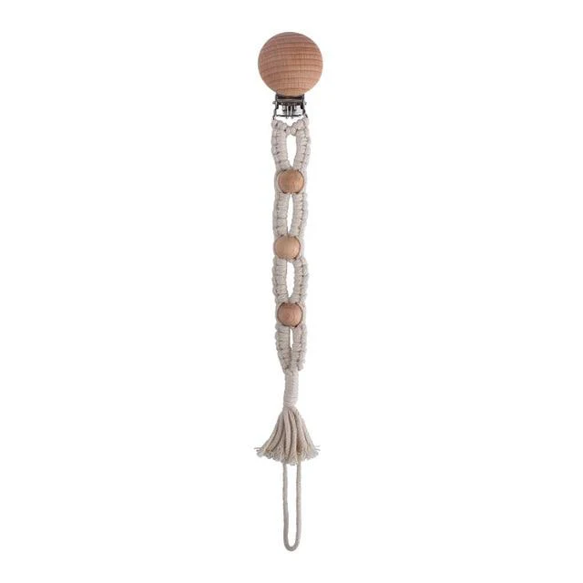 Attache Sucette Macramé : une pièce écologique fait en coton Eco-friendly et en bois
