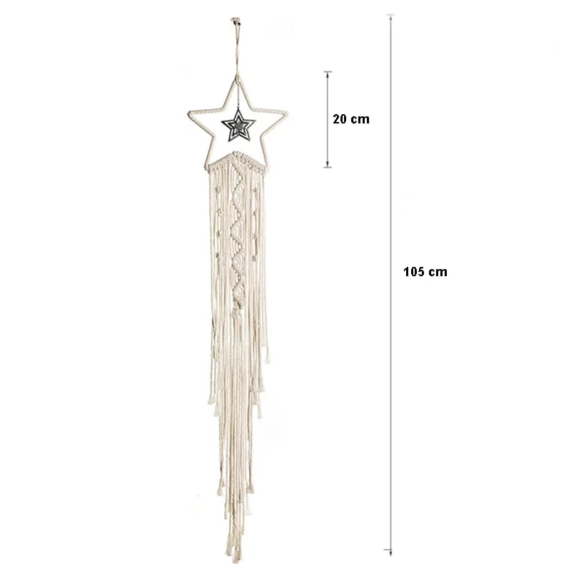 Éblouis-toi devant ce magnifique attrape-rêves et son Motif Étoile. Cette étoile est fabriquée à la main en utilisant des techniques de broderie les plus précises et les plus abouties.
