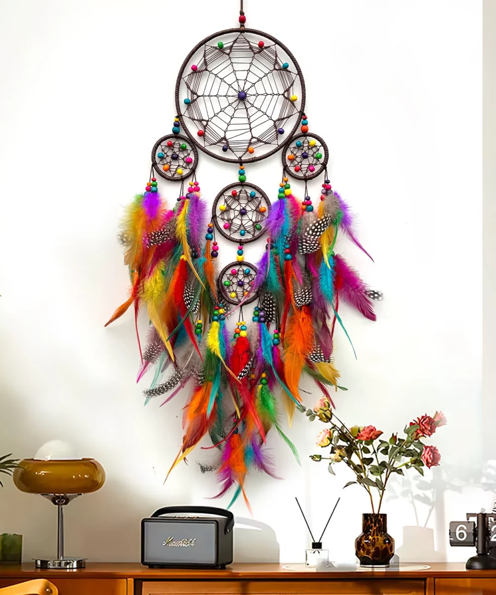 - Nom : attrape-rêves en plumes colorées tissées à la main de style nordique Olivenorma