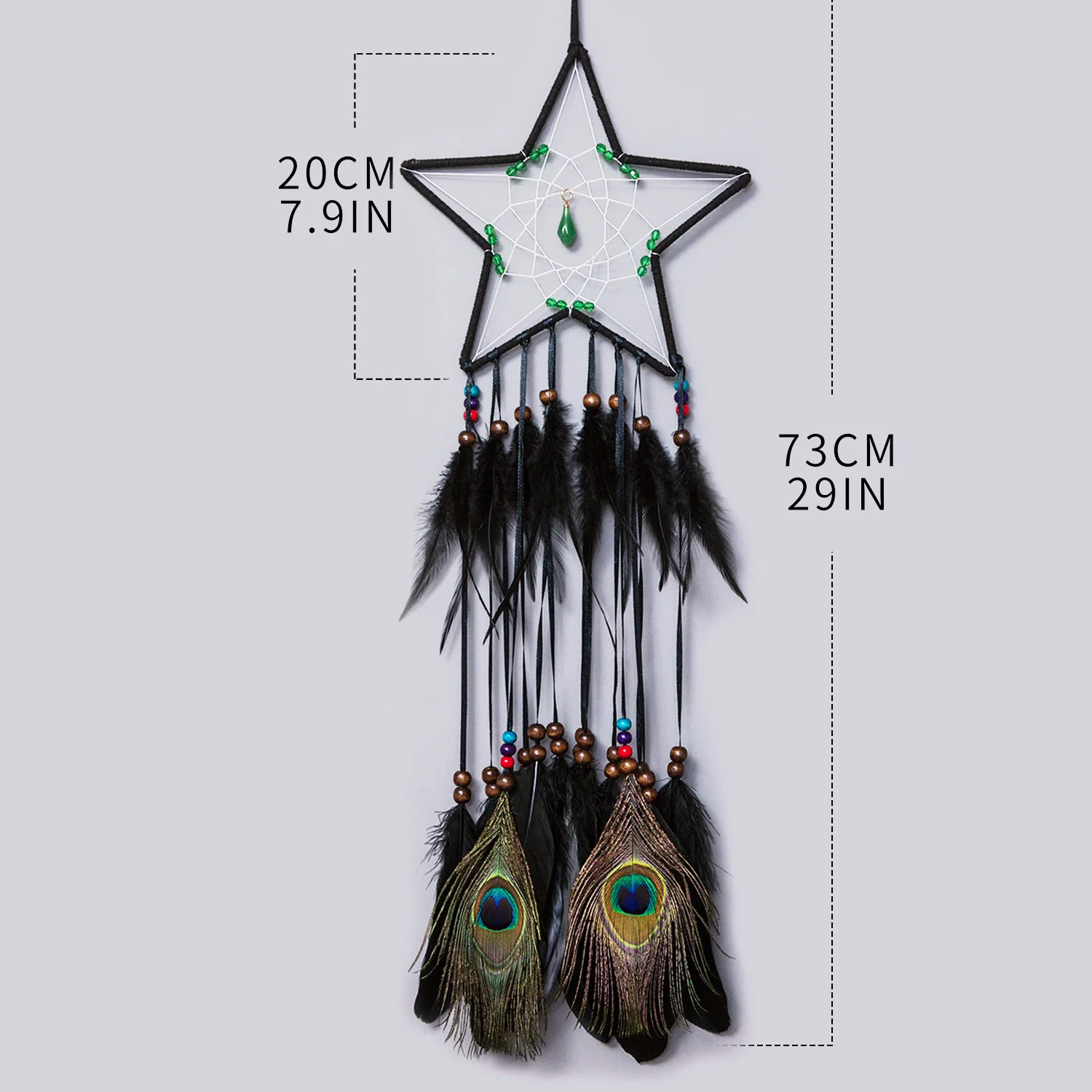 - Nom : Attrape-rêves en plumes de paon en aventurine verte naturelle Olivenorma