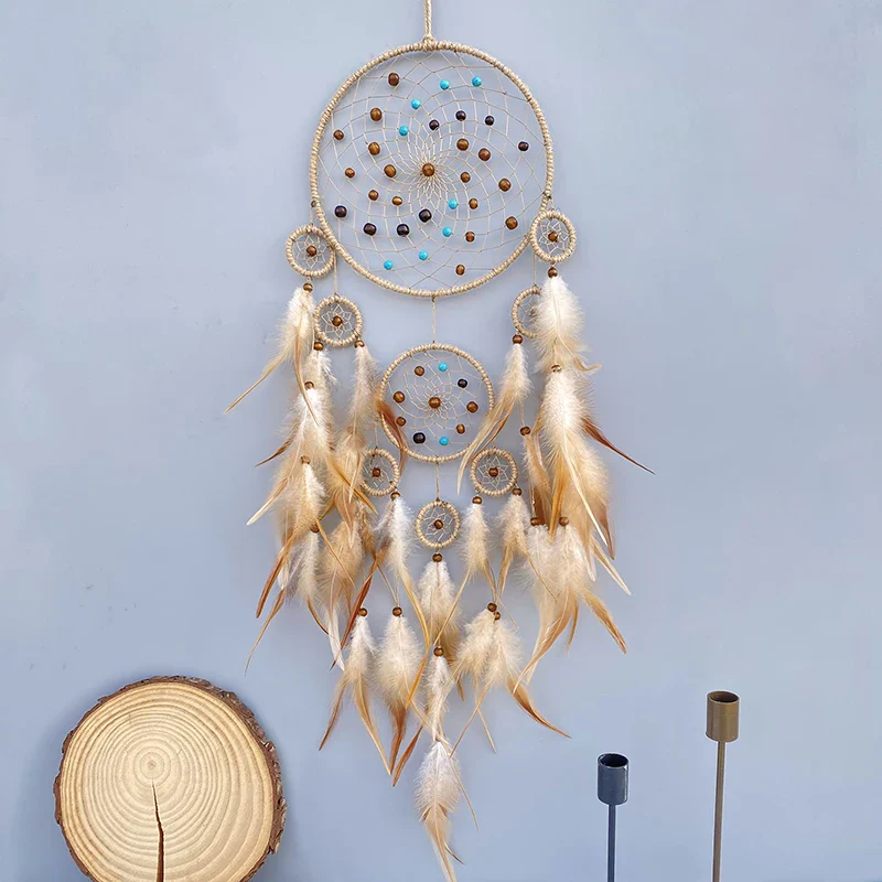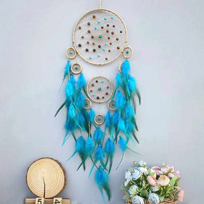 Attrape-rêves métal plumes colorées pour décoration murale intérieure