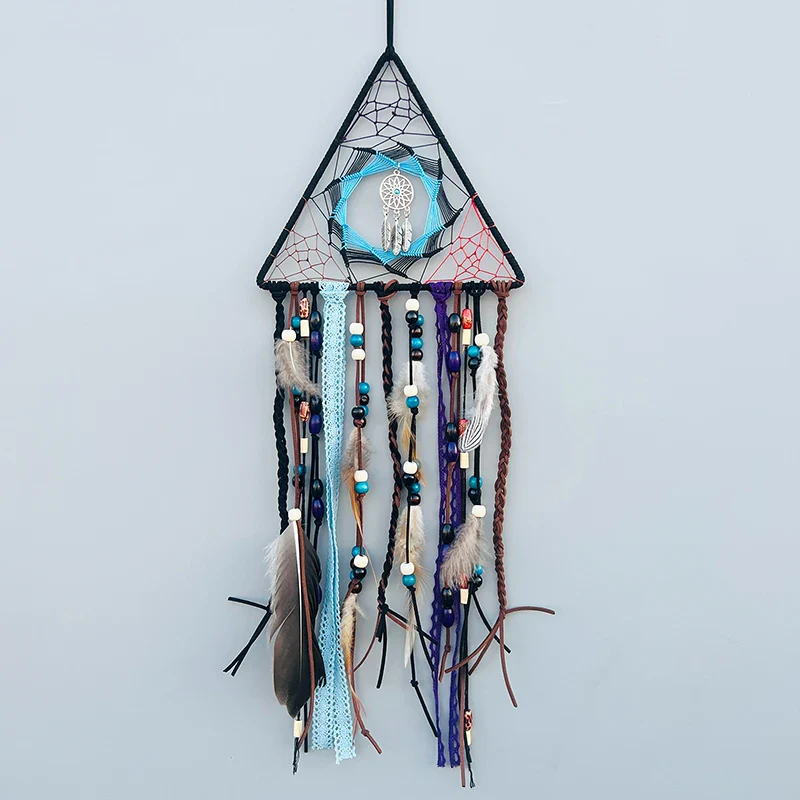 Attrape-rêves Triangle Métal Tissé à la Main pour décoration murale de chambre et salon