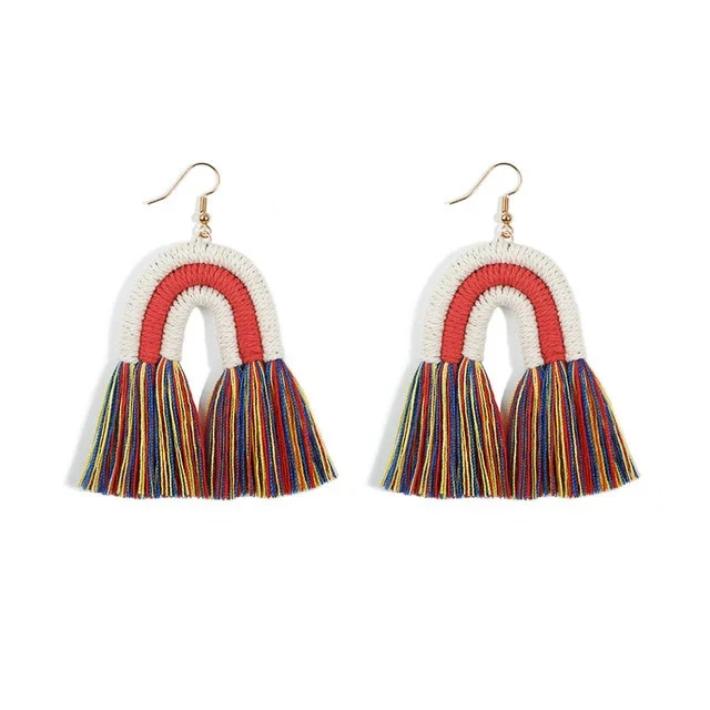 Succombez à notre paire de Boucle Oreille Macramé en forme d’arc en ciel pour des accessoires colorés