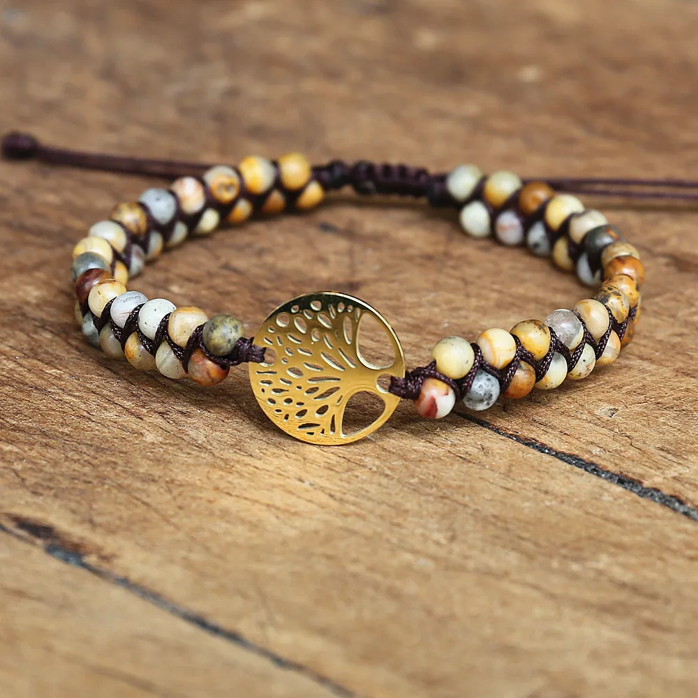 Le bracelet arbre de vie, orné de perles de jaspe nouées en macramé, est un porte-bonheur intemporel symbolisant l’énergie, la sagesse et la sérénité, tout en apportant une touche élégante au style bohème. Ajustable et adapté à toutes les activités quotidiennes, ce bracelet coulissant se révèle être un accessoire aussi pratique que polyvalent, parfait pour accompagner aussi bien les moments de travail que les séances de méditation.