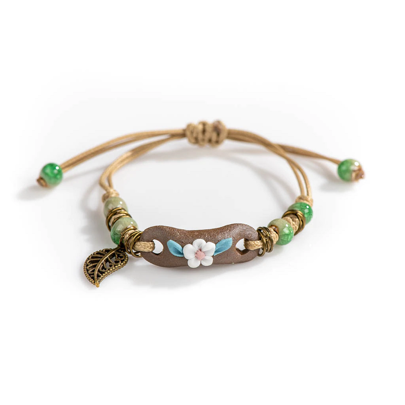 Arborez notre bracelet tressage forestier avec sa céramique en forme de fleur