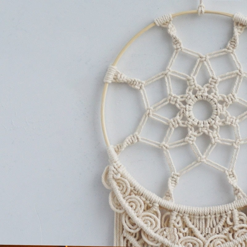 Voici notre grand capteur de rêves en tressage tissé à la main.