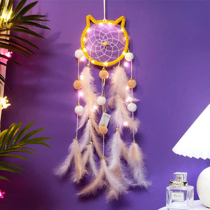 L’attrape-rêves en forme de chat mignon présente de charmants motifs en forme de chat et des pompons doux ainsi que des plumes, créant un effet ludique mais apaisant. L’attrape-rêves complexe aide à dissiper l’énergie négative, tandis que les carillons éoliens produisent des sons apaisants. Accrochez-le dans les chambres ou les espaces de vie pour apporter une touche de positivité, de détente et de joie à votre environnement.