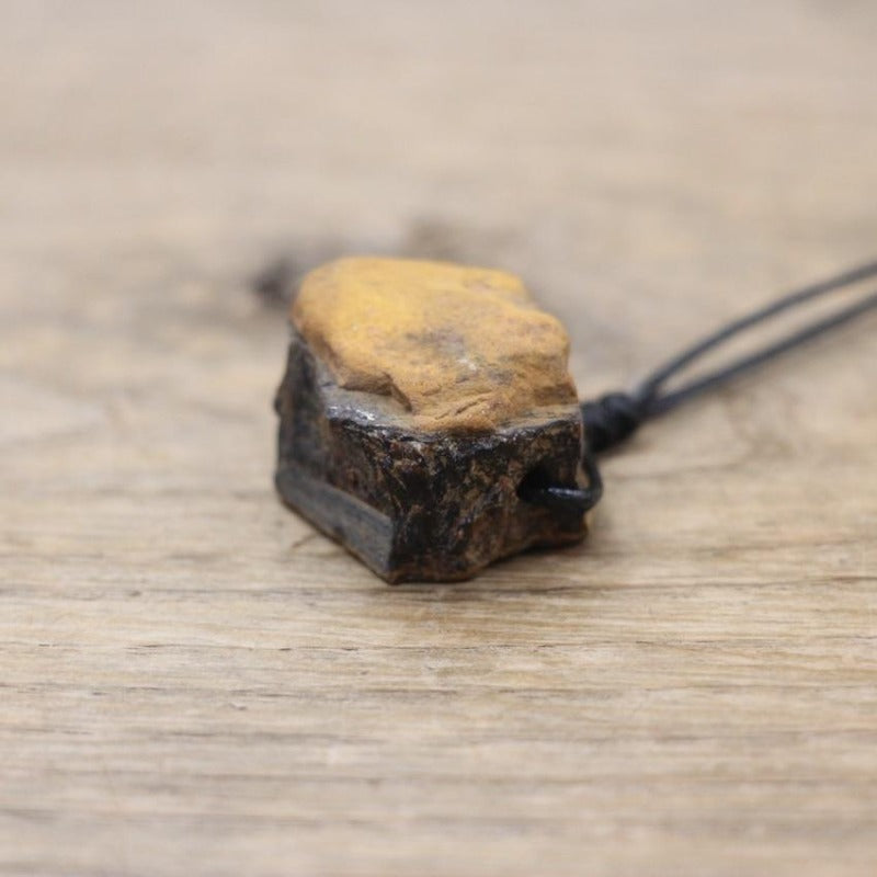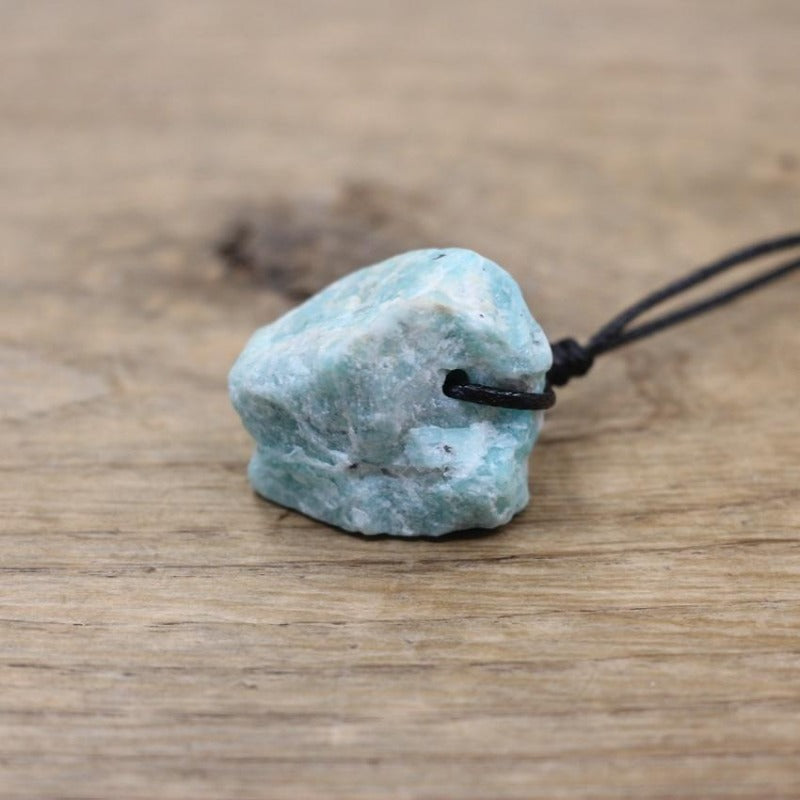 Craquez pour ce collier en tressage avec un fin cordage en coton mettant en valeur la pierre brute.