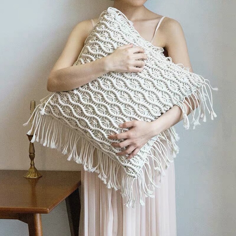Vous êtes à la recherche du complément idéal pour votre décoration intérieure ? Ce coussin tressageblanc est exactement ce qu’il vous faut ! Avec ses deux belles extrémités remplies de brins de tissu tissés de manière complexe, cette pièce d’inspiration bohème fera passer n’importe quel espace de terne à fabuleux. Ce magnifique tressage fait main est conçu pour garder son maillage de nœuds tressage intact même après une utilisation quotidienne prolongée.