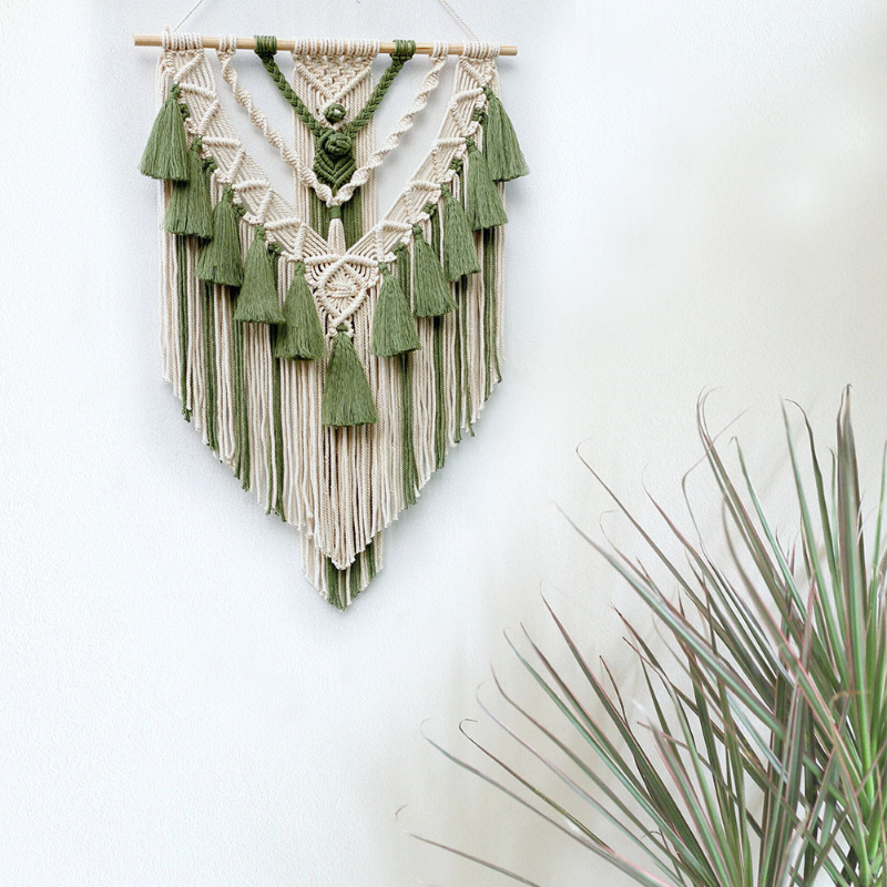 La déco murale en tressage est parfaite pour décorer votre intérieur en y ajoutant une touche de charme bohème naturel. Disponible en vert ou en jaune moutarde, ce magnifique tissage fait à la main en coton naturel est décoré de pompons sur sa largeur pour donner une touche de fantaisie typique de cet art de tissage. Placé dans votre salon, dans votre chambre à coucher ou dans l’entrée, cette déco murale tressage est polyvalente et trouvera sa place dans n’importe quelle pièce de votre maison.