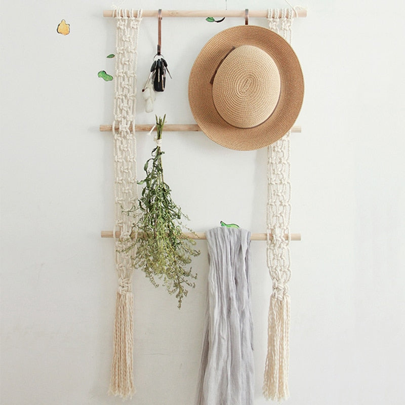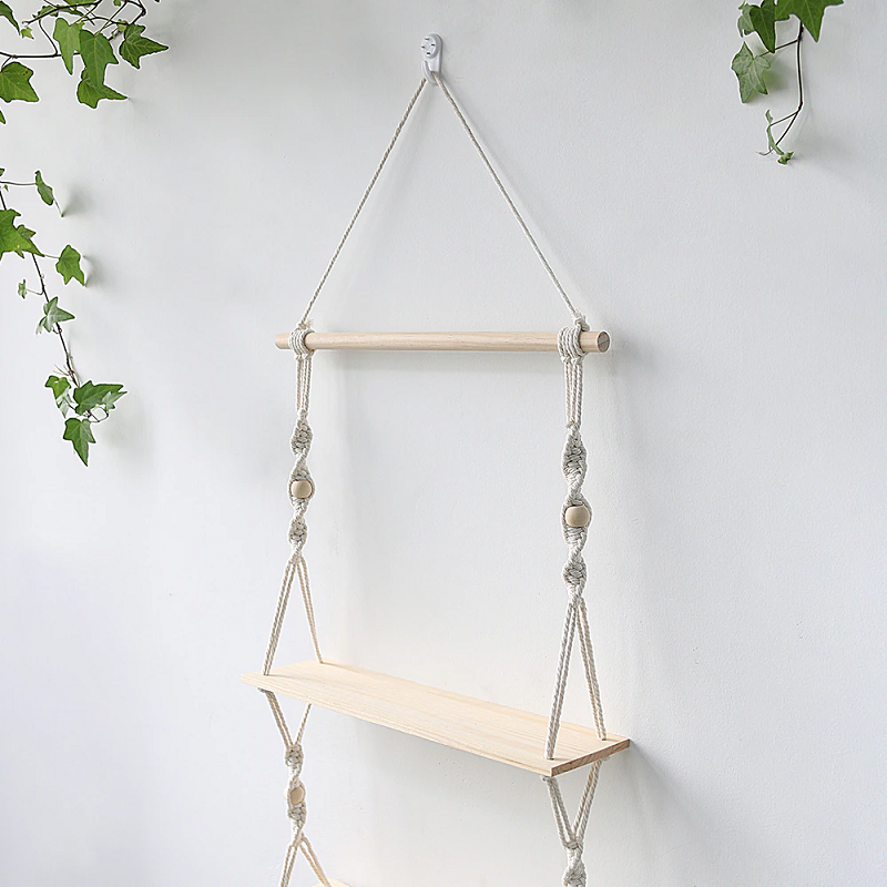 Cette étagère murale à deux niveaux est le complément parfait de toute maison. Elle est à la fois délicate et bohème, avec un style artisanal authentique qui trouvera sa place dans votre salon ou votre chambre à coucher au thème bohème.