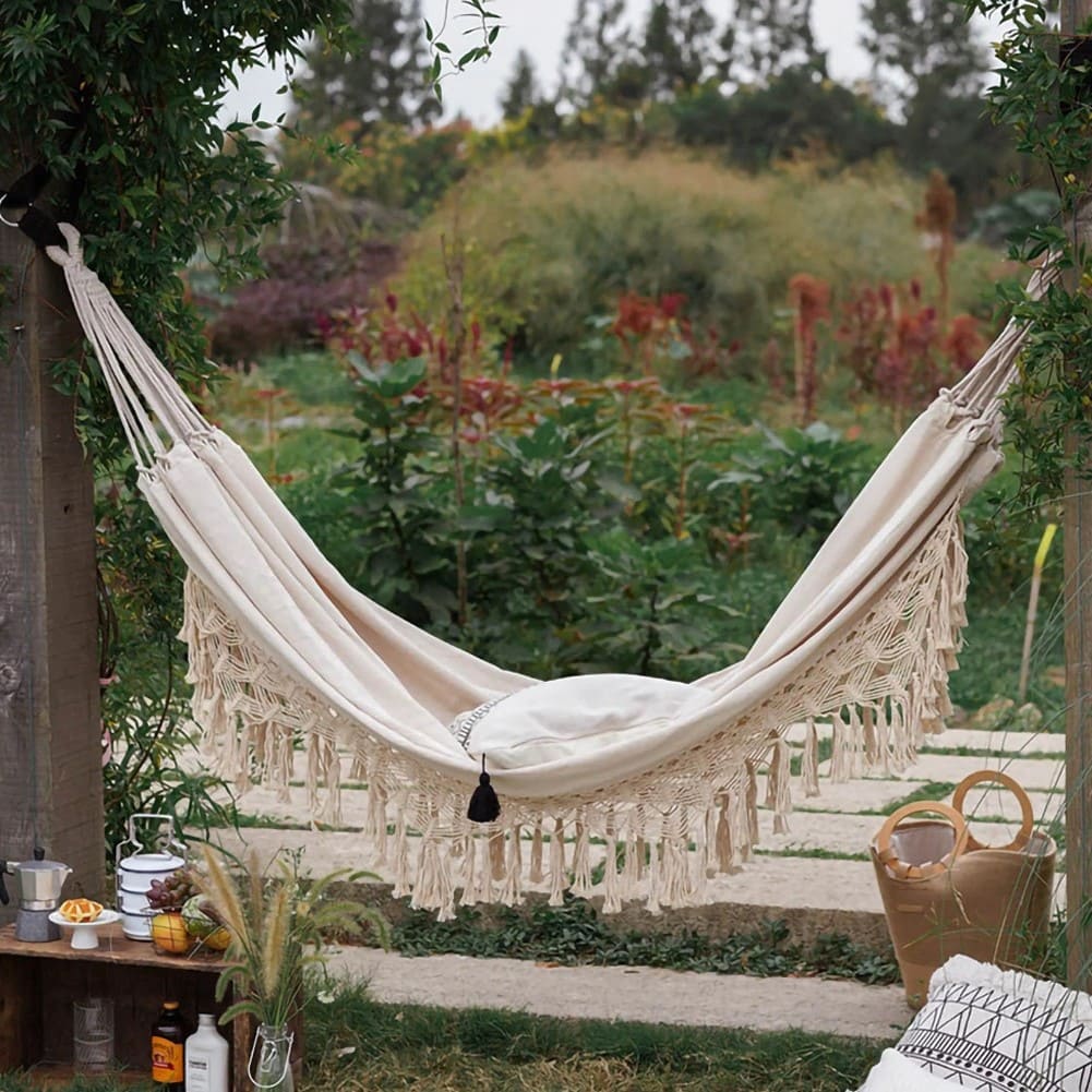 Conçu pour résister aux éléments extérieurs, ce hamac à franges sera à la fois durable et résistant, assurant des moments de détente prolongés quel que soit le temps. Installez-vous confortablement, laissez-vous bercer par le doux balancement de ce hamac et profitez d’une pause bien méritée dans votre jardin, sur votre terrasse ou même à l’intérieur de votre maison, vous ne vous serez jamais senti aussi bien !