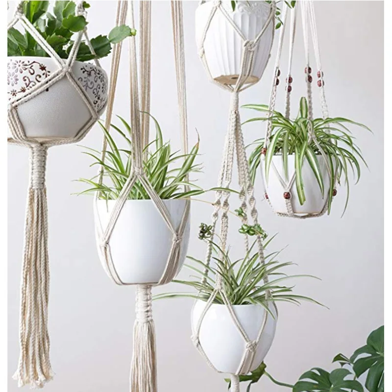 Ce lot de 4 suspensions macramé au style bohème permet de mettre en valeur vos plantes d’intérieur tout en créant une ambiance naturelle et apaisante. Ces suspensions ajoutent de la hauteur à votre décoration et contribuent à créer une atmosphère boho chic resplendissante dans votre intérieur.