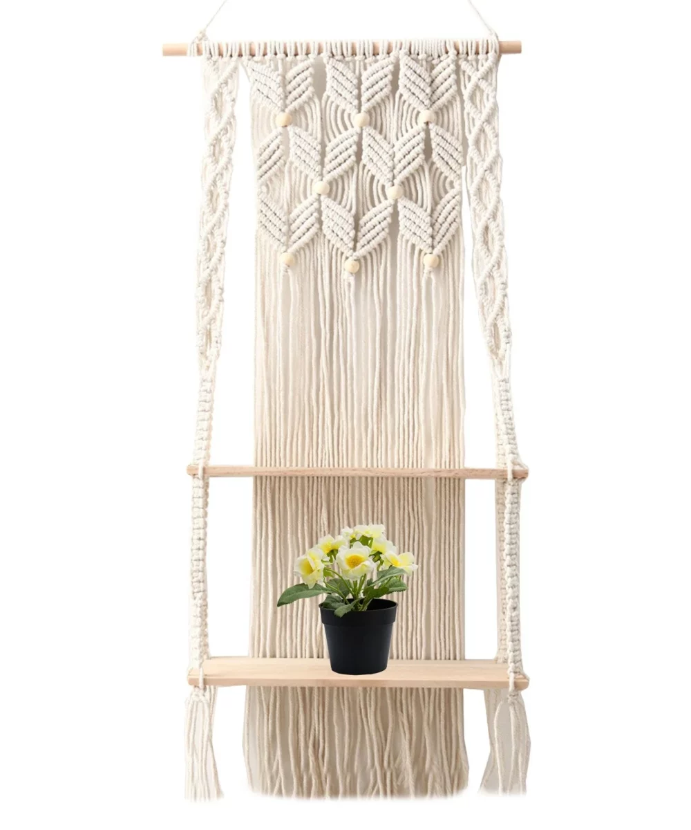 Macramé Étagère : craquez pour l’étagère en macramé à deux niveaux pour un somptueux meuble bohème