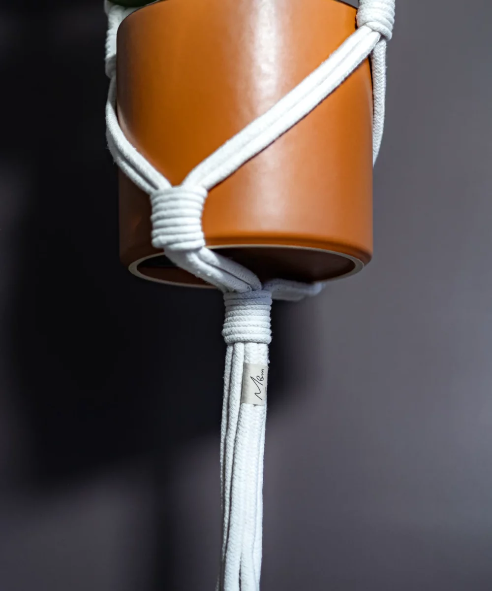 Ces lanières plates et imposantes donnent tout l’intérêt au choix du motif. Une suspension plante à la fois simple et complexe qui intrigue. Le volume fait place nette au dessin tandis que la grandiloquence laisse place à l’écriture.
