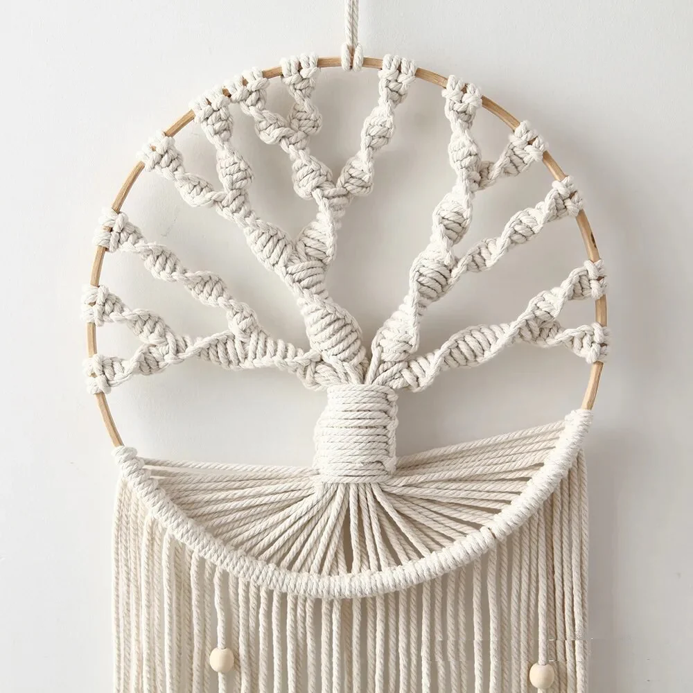 Si vous êtes en quête d’un macramé mural à la symbolique forte, optez vite pour l’arbre de vie en macramé, il vous offrira l’opportunité d’inviter énergie, amour et protection au sein de votre espace intérieur. Pour une atmosphère harmonieuse, légère et envoûtante, ce macramé mural pourra être placé en tant que tête de lit afin de veiller à la fois sur vos nuits et sur l’embellissement de votre mur de manière exquise. Il se fondra parfaitement dans un décor bohème et naturel.