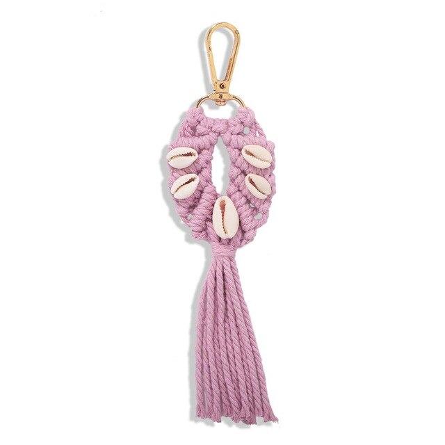 Macramé Porte Clé de toutes les couleurs avec perles en forme de coquillage