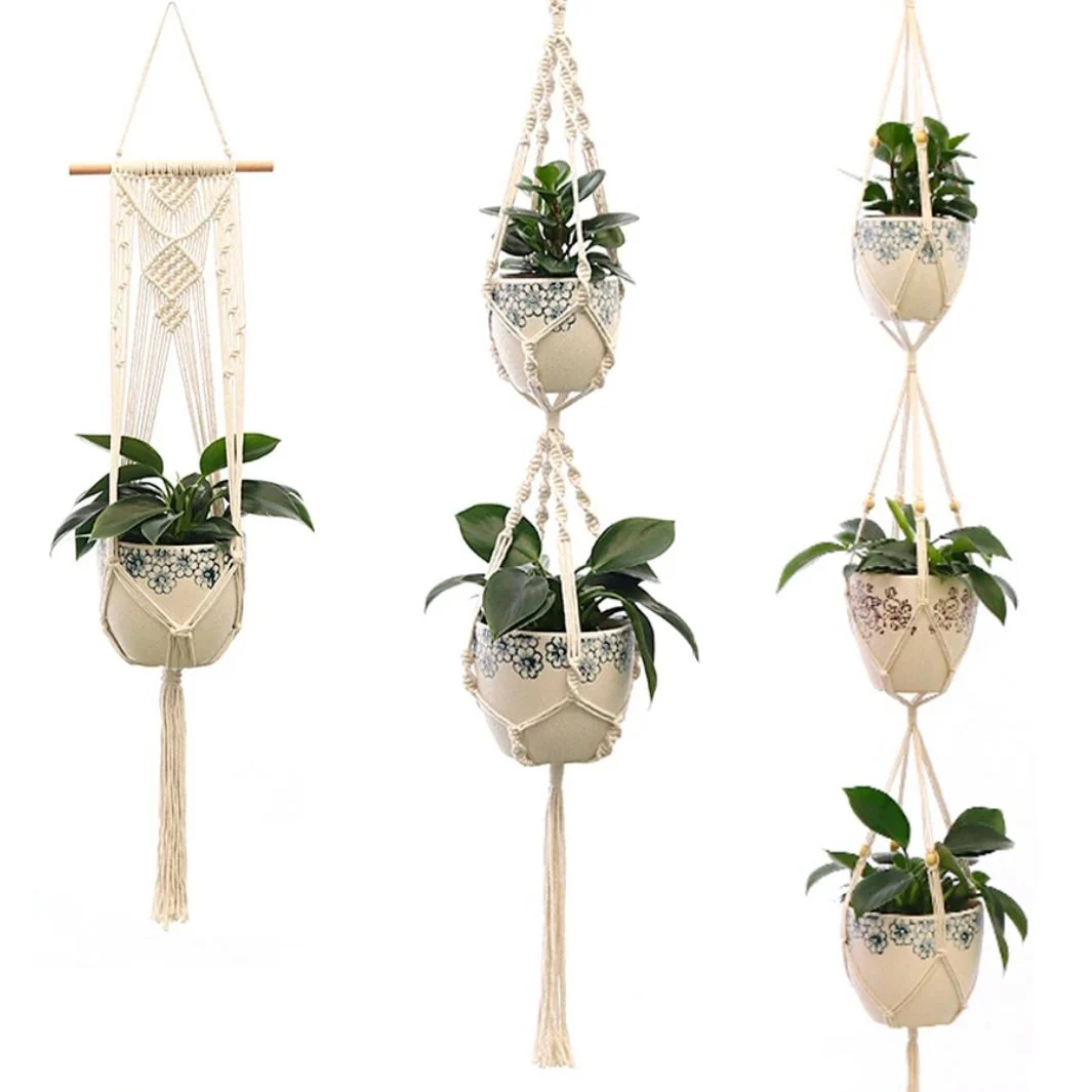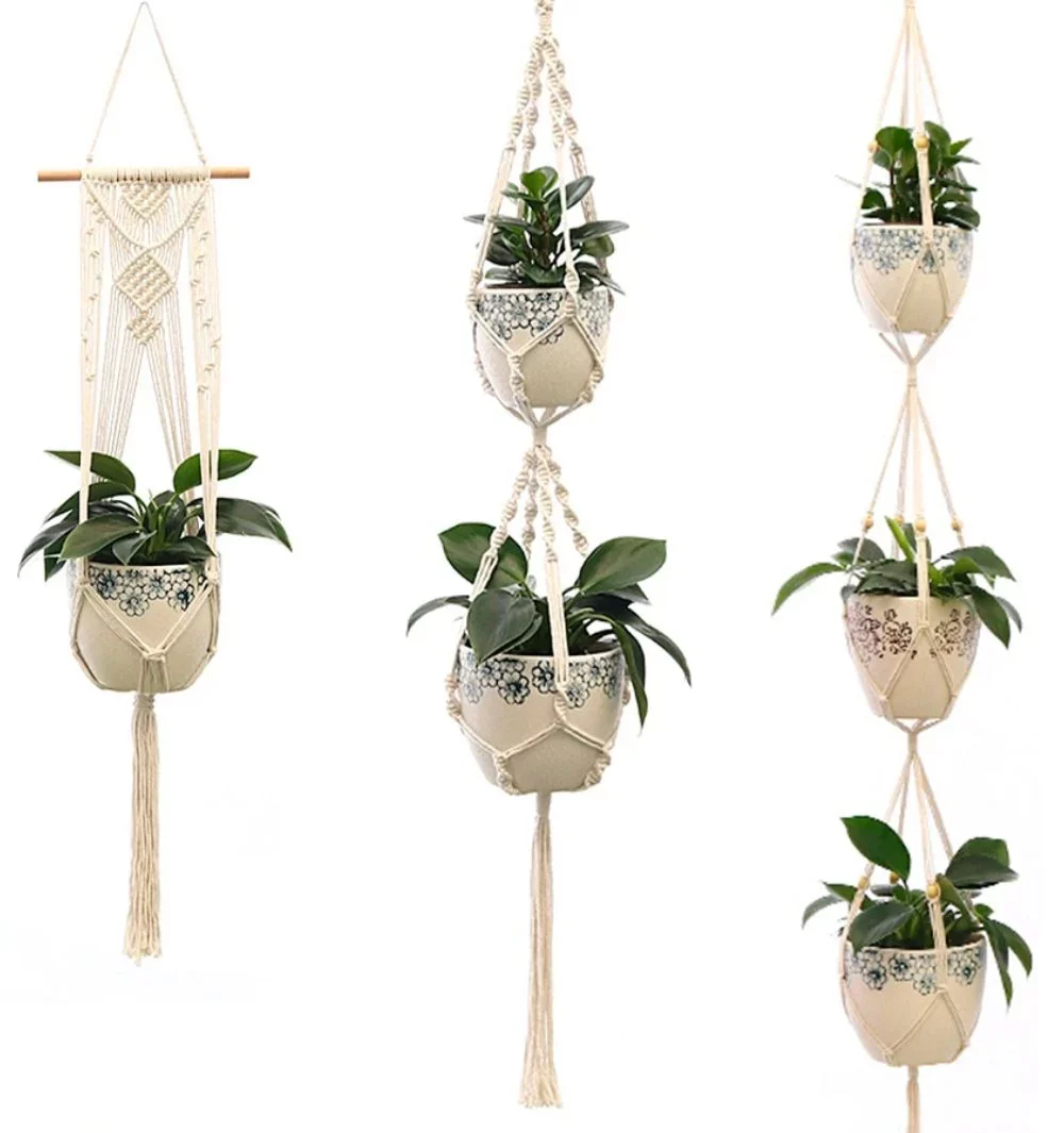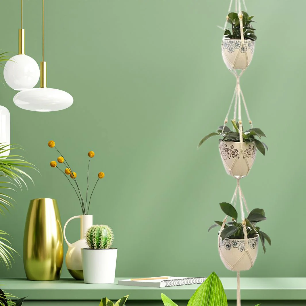 Ajoutez une touche d’originalité à votre salon avec le macramé suspension pot 3 plantes. Pour tous les pots colorés ou cache-pots originaux, vos plus belles plantes grasses ou tombantes seront mises en valeur comme nulle part ailleurs.