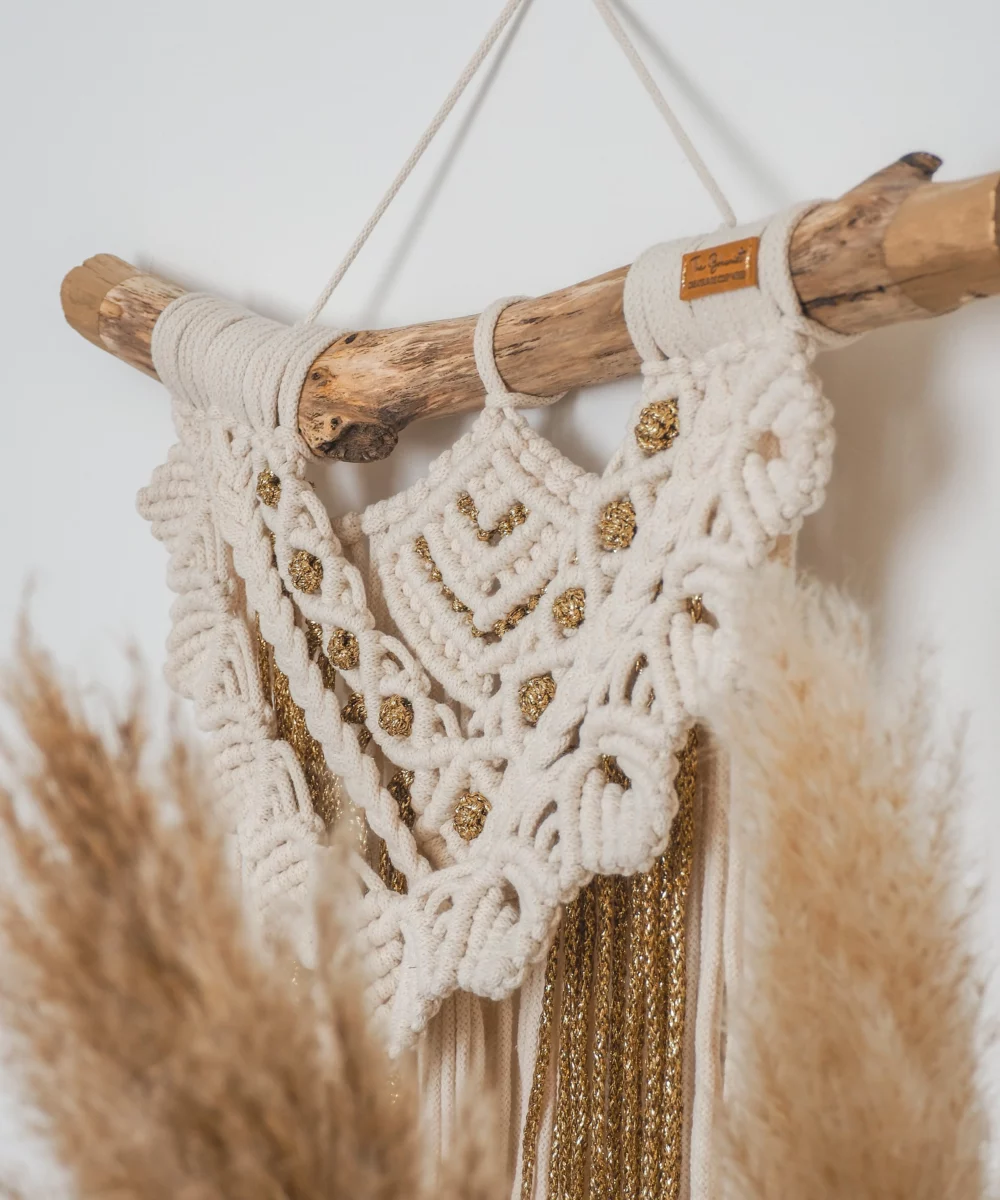 Mini macramé à accrocher au mur ou au rétro de votre voiture.