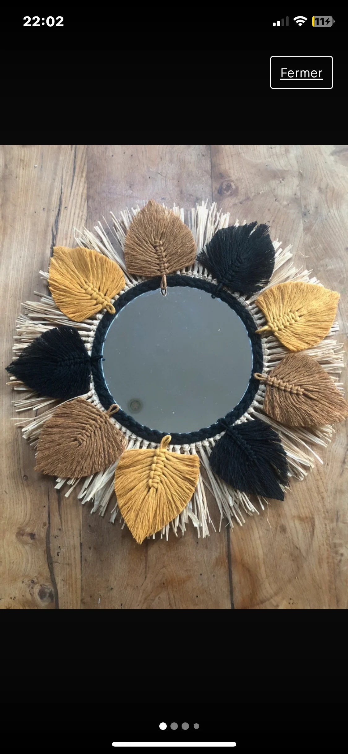 Soyez le premier à laisser votre avis sur “Miroir en raphia naturel et feuilles en coton macramé (différents coloris au choix)” Annuler la réponse