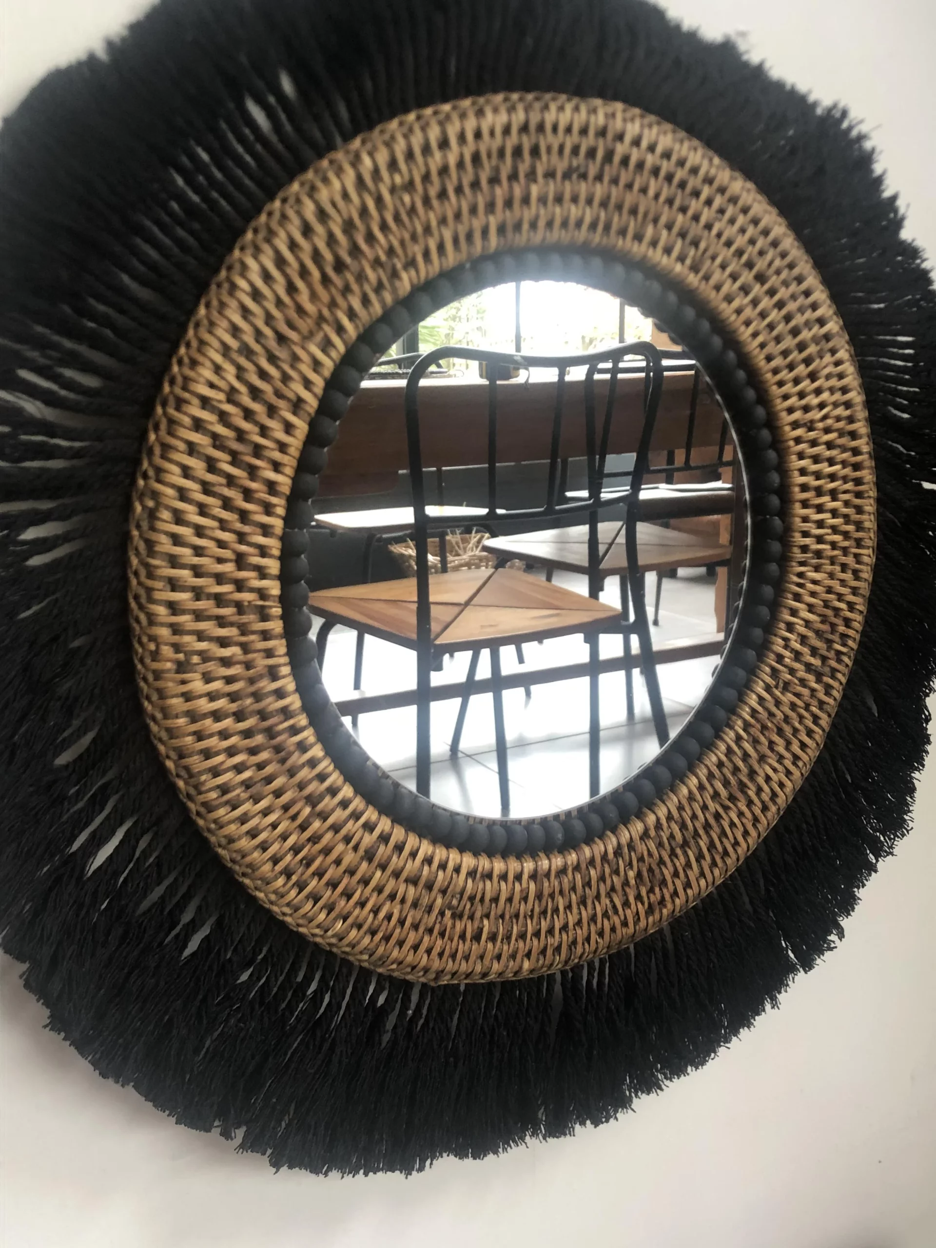 Miroirs en rotin avec couronne en macramé – Choix de couleurs variées