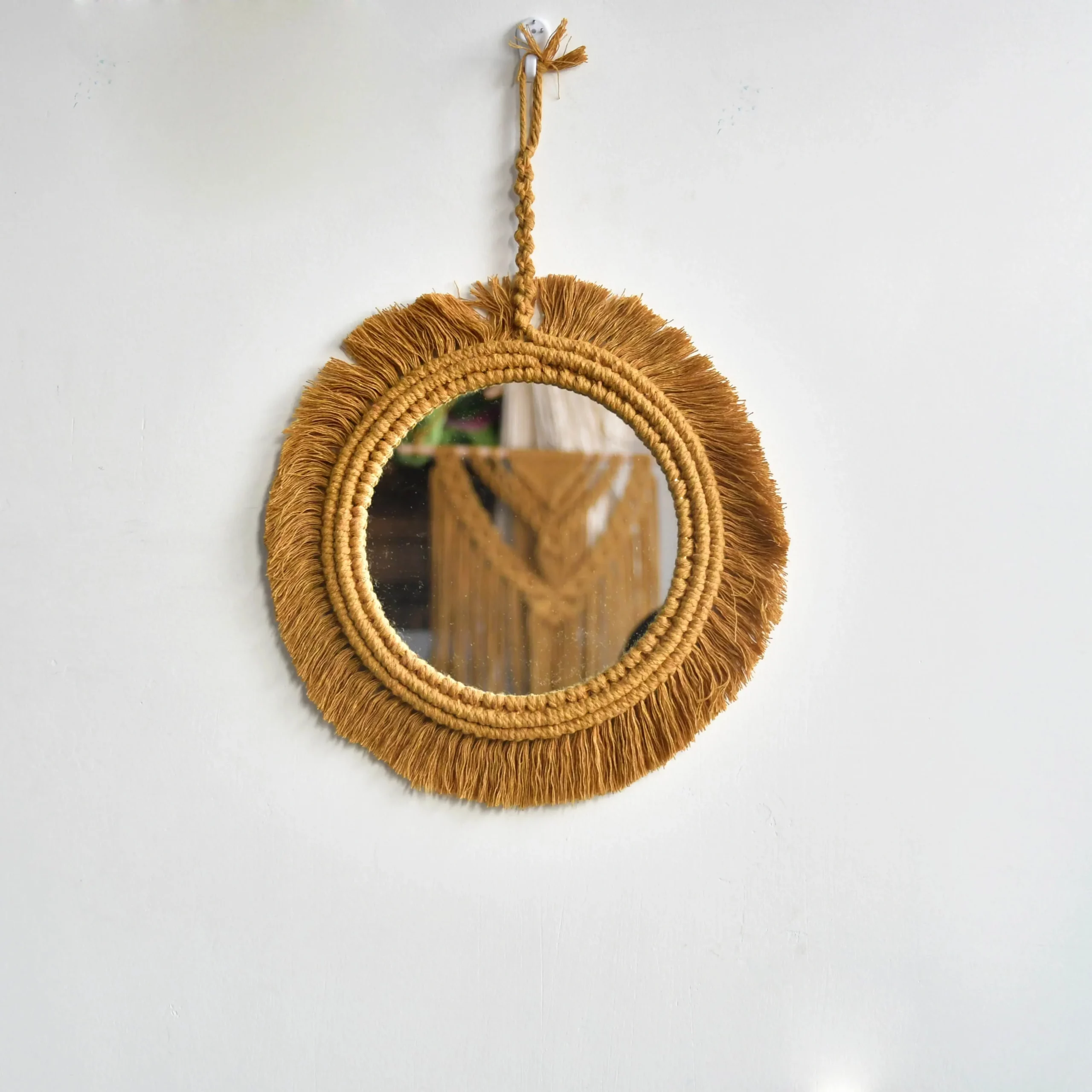 Ajoutez une touche de chaleur et de nature à votre intérieur avec ce miroir coloré en macramé. Cette pièce vive dynamisera votre espace de manière saisissante. Son design, mêlant habilement le coton tressé et les franges, lui confère une esthétique à la fois riche et captivante, parfaite pour être exposée dans n’importe quelle pièce.
