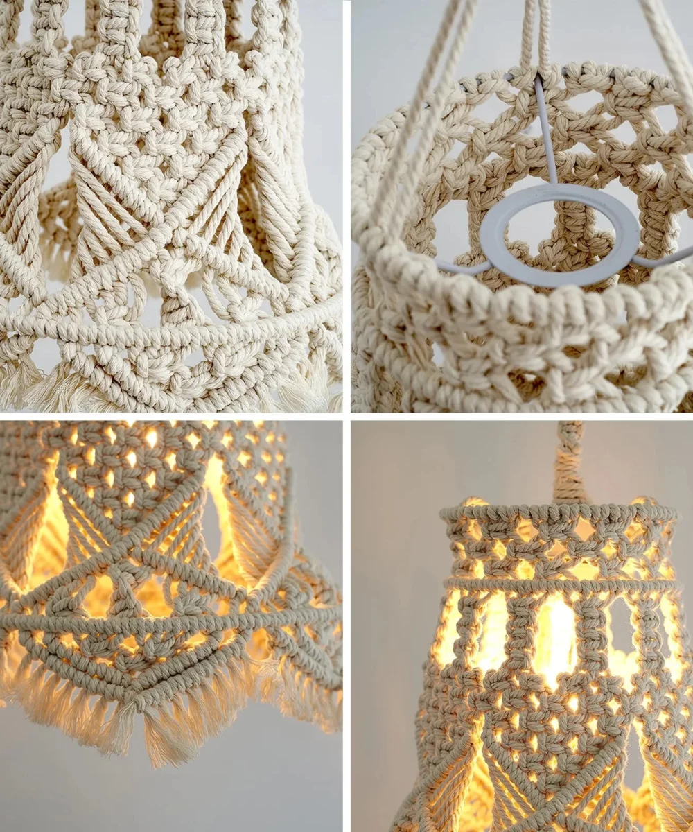 Profitez de la douce lumière filtrée à travers les motifs en macramé de cet abat-jour pour créer une ambiance relaxante dans votre chambre à coucher ou votre coin lecture. Sa polyvalence lui permettra de s’intégrer harmonieusement à divers styles de décoration intérieure.