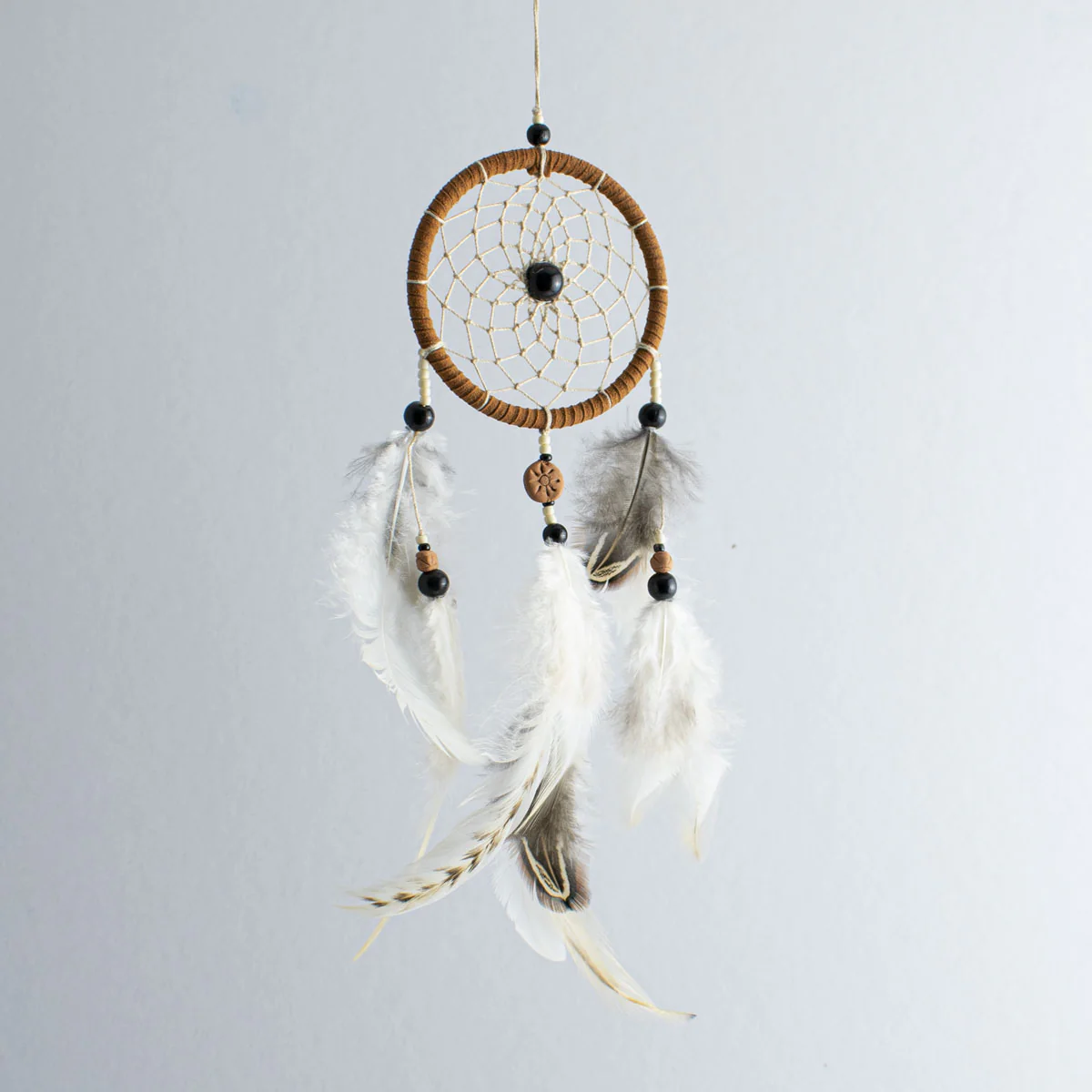 “Cadeau du grand esprit” est un petit attrape-rêve majestueux qui célèbre la succession des saisons et les cycles de la vie, deux phénomènes considérés comme des “cadeaux du grand esprit” par plusieurs peuples amérindiens.