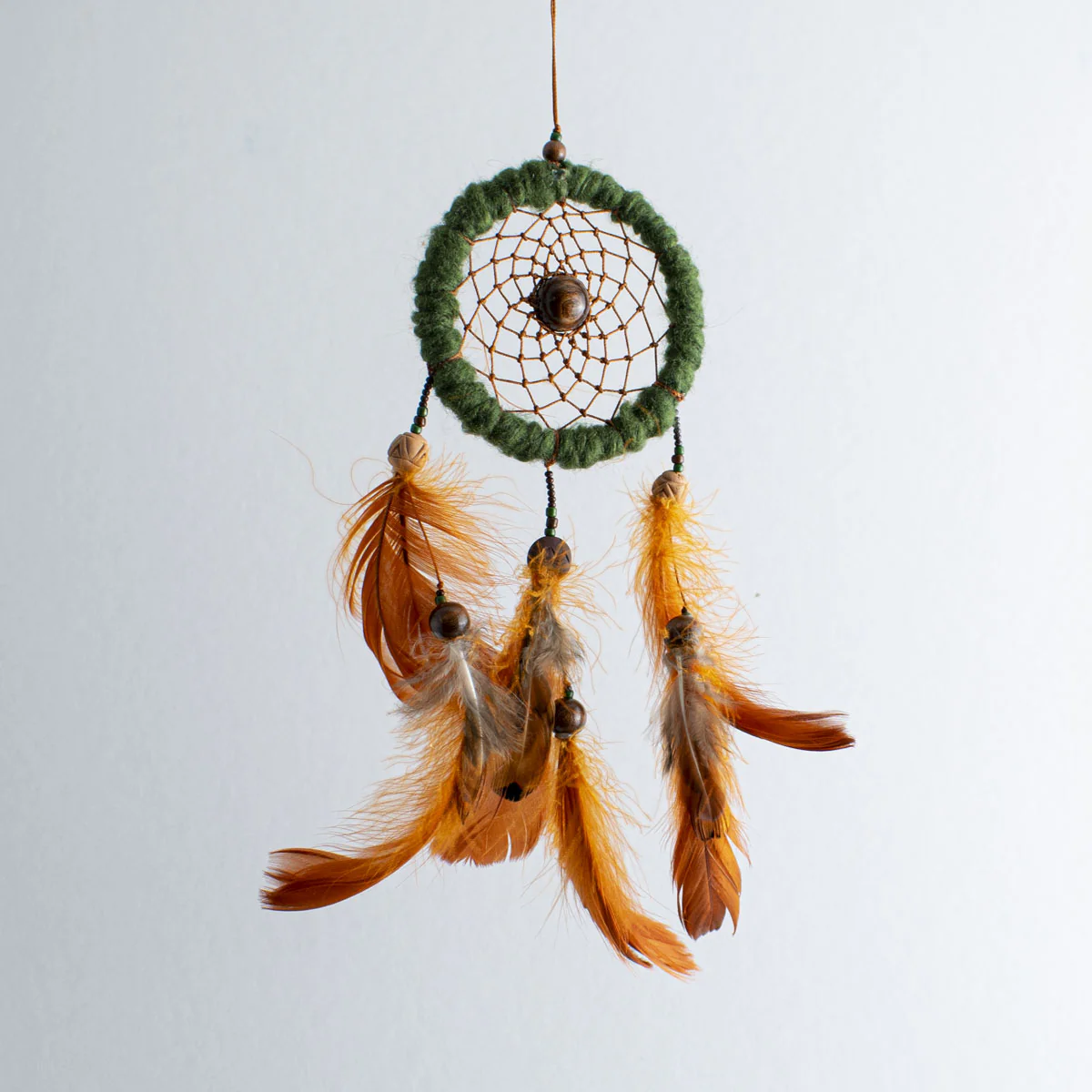 “Chant du feu sacré”est un attrape-rêve de petite taille, dont le charme opère par ses couleurs chatoyantes, presque mystiques. Il incarne le mouvement, la création et la renaissance.