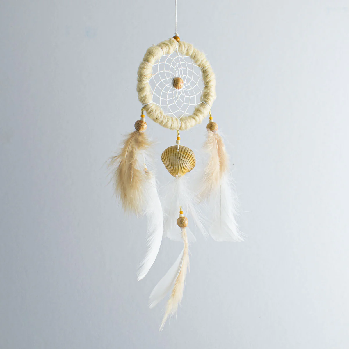 “Rose des sables” est un petit attrape-rêve artisanal beige et écru, qui célèbre la rose des sables, ce cristal emblématique du désert.