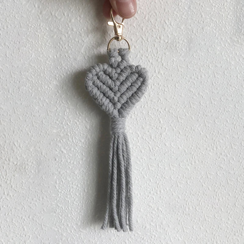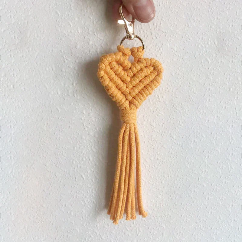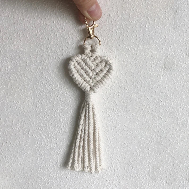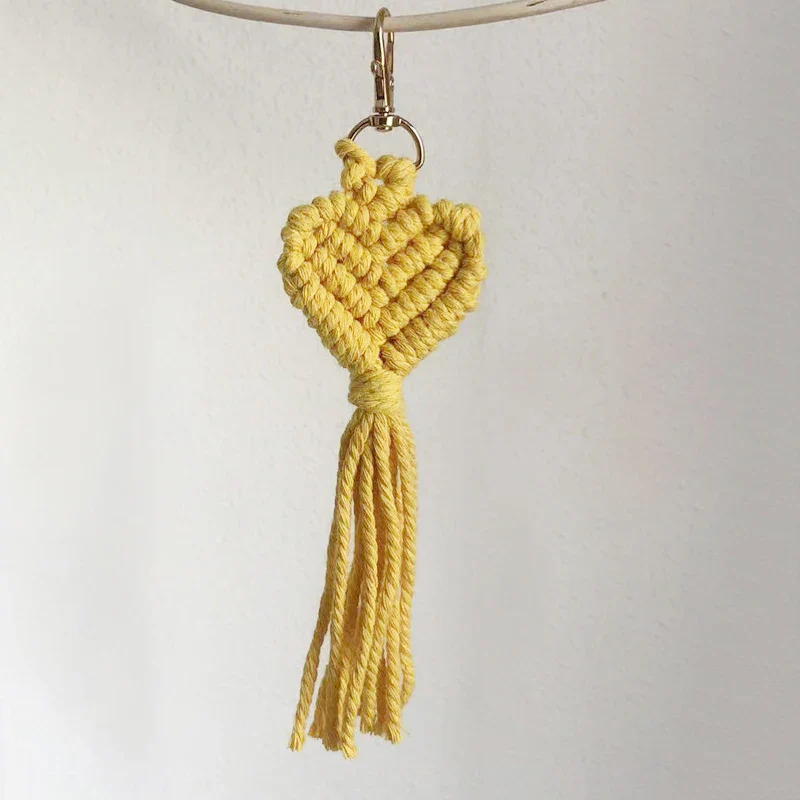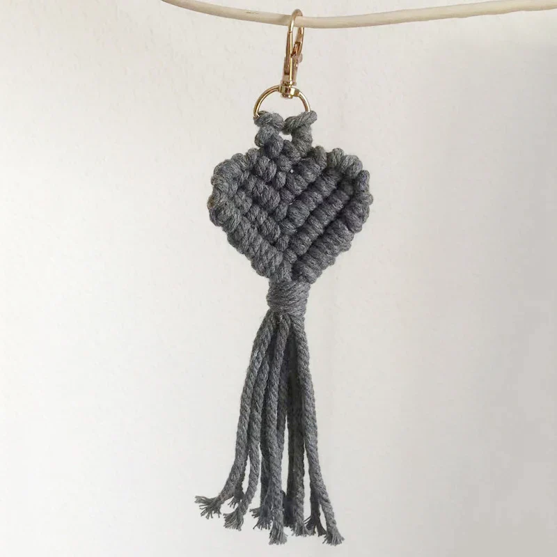 Ce porte-clé macramé en forme de cœur, épais et texturé, est un accessoire bohème fait main qui permet de personnaliser son style avec différentes couleurs. Fabriqué en coton naturel durable, il représente un cadeau original et attentionné qui saura plaire à tous les amateurs de style boho.