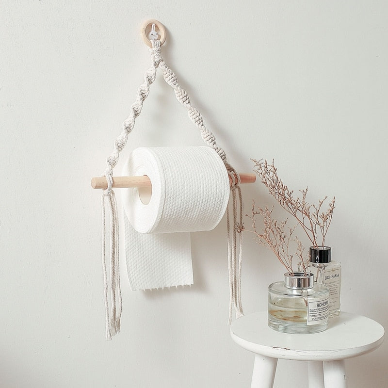 Ce petit porte papier toilette fait main est un tressage discret qui habillera à la perfection vos toilettes avec une petite touche d’esprit bohème. Avec ses fines tresses en coton écru et ses finitions en bois ce petit tissage est un incontournable du tressage mural pour finaliser votre déco avec un petit tressage qui fera la différence.