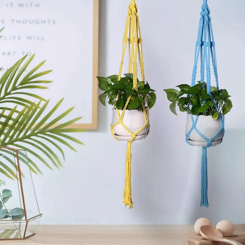 Traditionnellement confectionnée dans la couleur naturelle du coton écru, la suspension en macramé se pare également de couleurs afin d’offrir un effet sublime qui illuminera les intérieurs les plus chaleureux. Laissez-vous tenter par un porte-plante coloré en macramé et offrez à vos plantes le luxe d’une vie aérienne et florissante, transformant ainsi votre environnement.