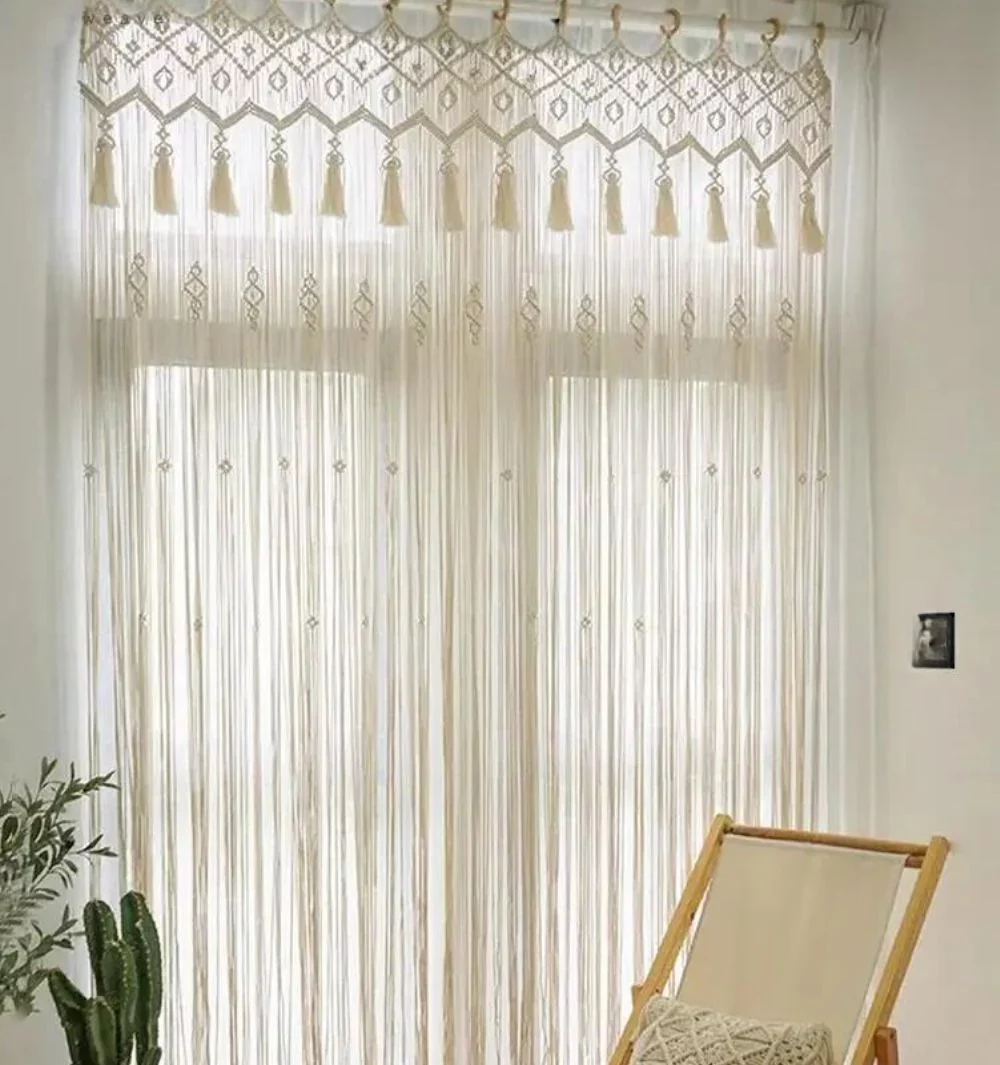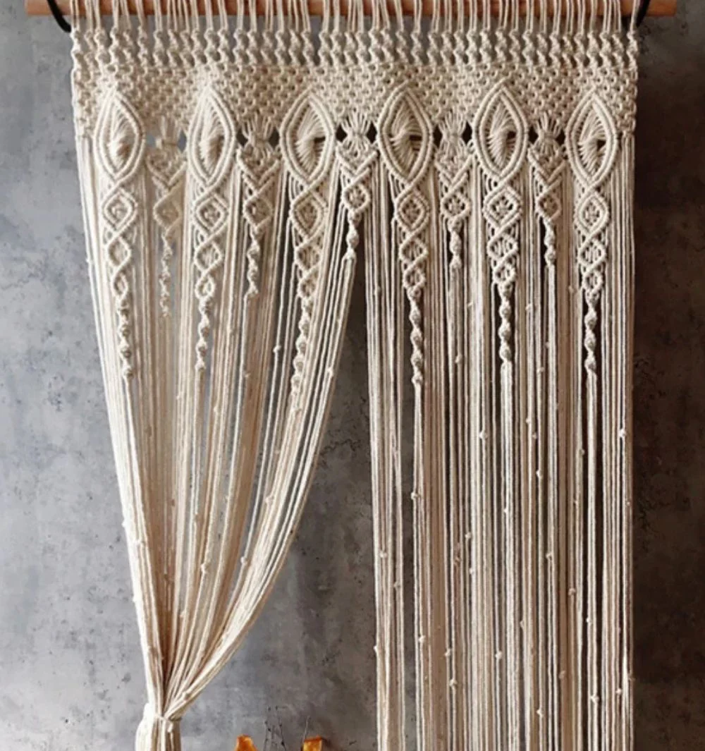 Plongez dans la tradition avec notre grand rideau macramé “Palma”. Doté de fils en coton naturel et feuillage, ce macramé offre un mélange subtil de modernité et de tradition.