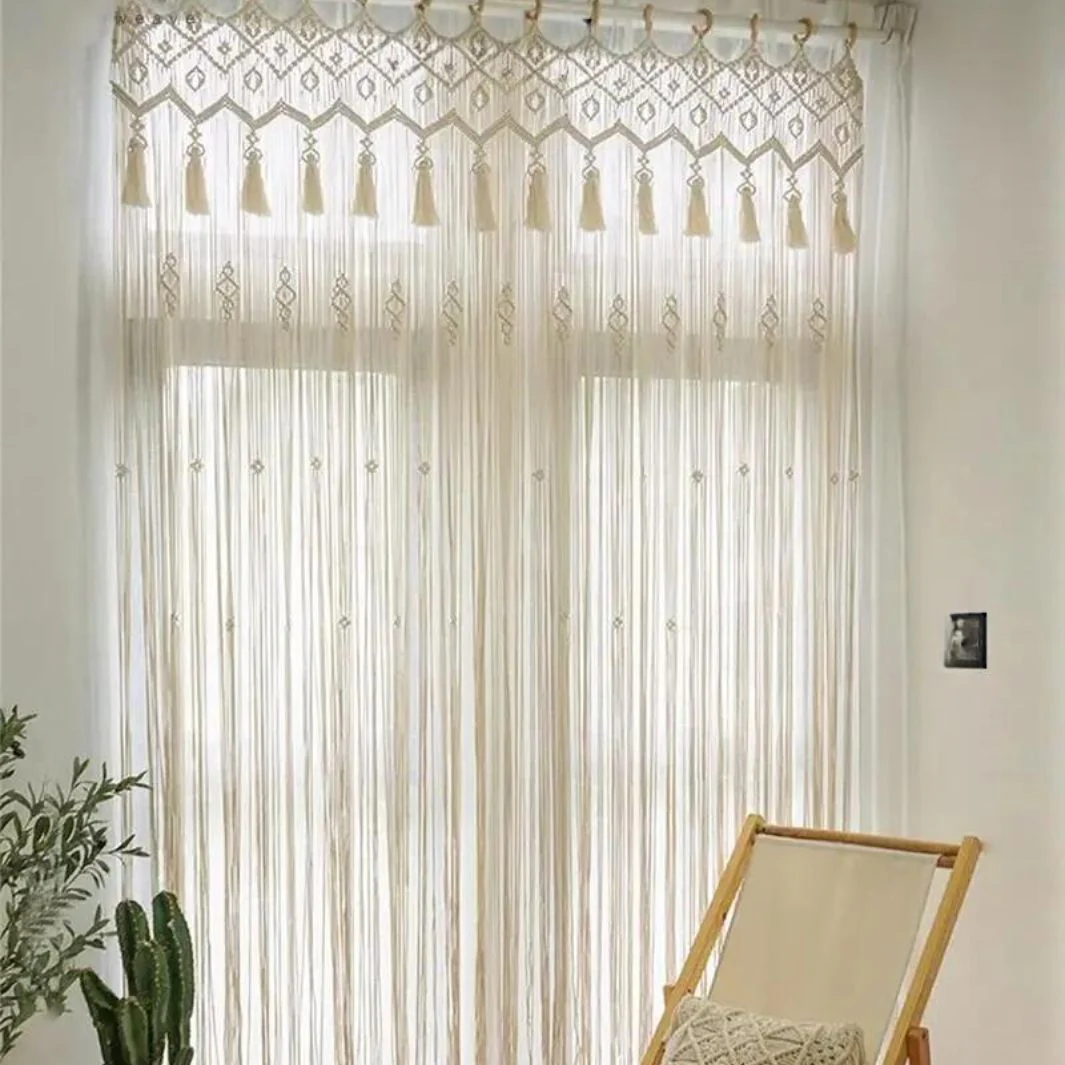 Plongez dans l’art du macramé avec notre superbe rideau salon “Séville”. Un design travaillé et des pompons pour un mélange subtil de modernité et de tradition.