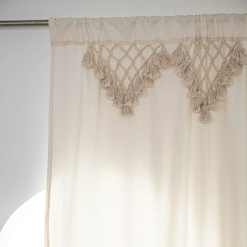 Découvrez notre rideau en tressage et son drapé couleur écru avec son fil tressage décoratif. Ce rideau tressage est une pièce sobre et élégante qui habillera à la perfection vos fenêtres tout en filtrant légèrement la lumière pour une ambiance bohème unique. Les rideaux voilages tressage sont parfaits pour apporter une décoration sobre avec une légère touche de style boho.