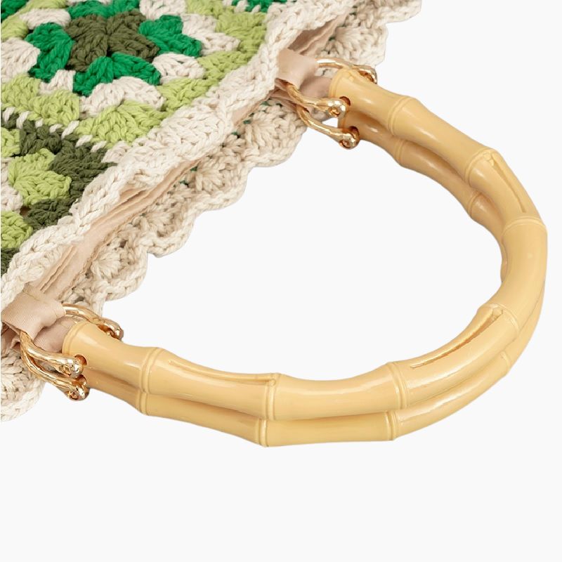 Sac tressage vert en coton fait à la main.