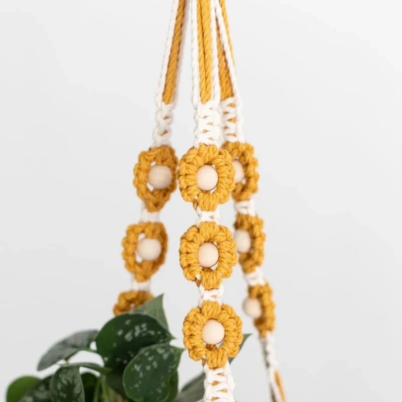 Accrochez ce support pour plante dans votre salon, votre véranda ou même dans votre jardin sera un choix judicieux afin d’apporter une présentation élégante à vos plantes. Sa construction robuste assurera un support stable et sécurisé pour vos pots de fleurs, tandis que son style bohème ajoutera une dimension esthétique à votre décoration intérieure ou extérieure. N’attendez plus et offrez à vos plantes un écrin élégant en optant pour notre suspension macramé, sa couleur jaune plongera votre décor dans un style à la frontière entre vintage et modernité.