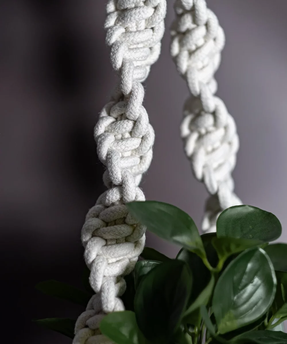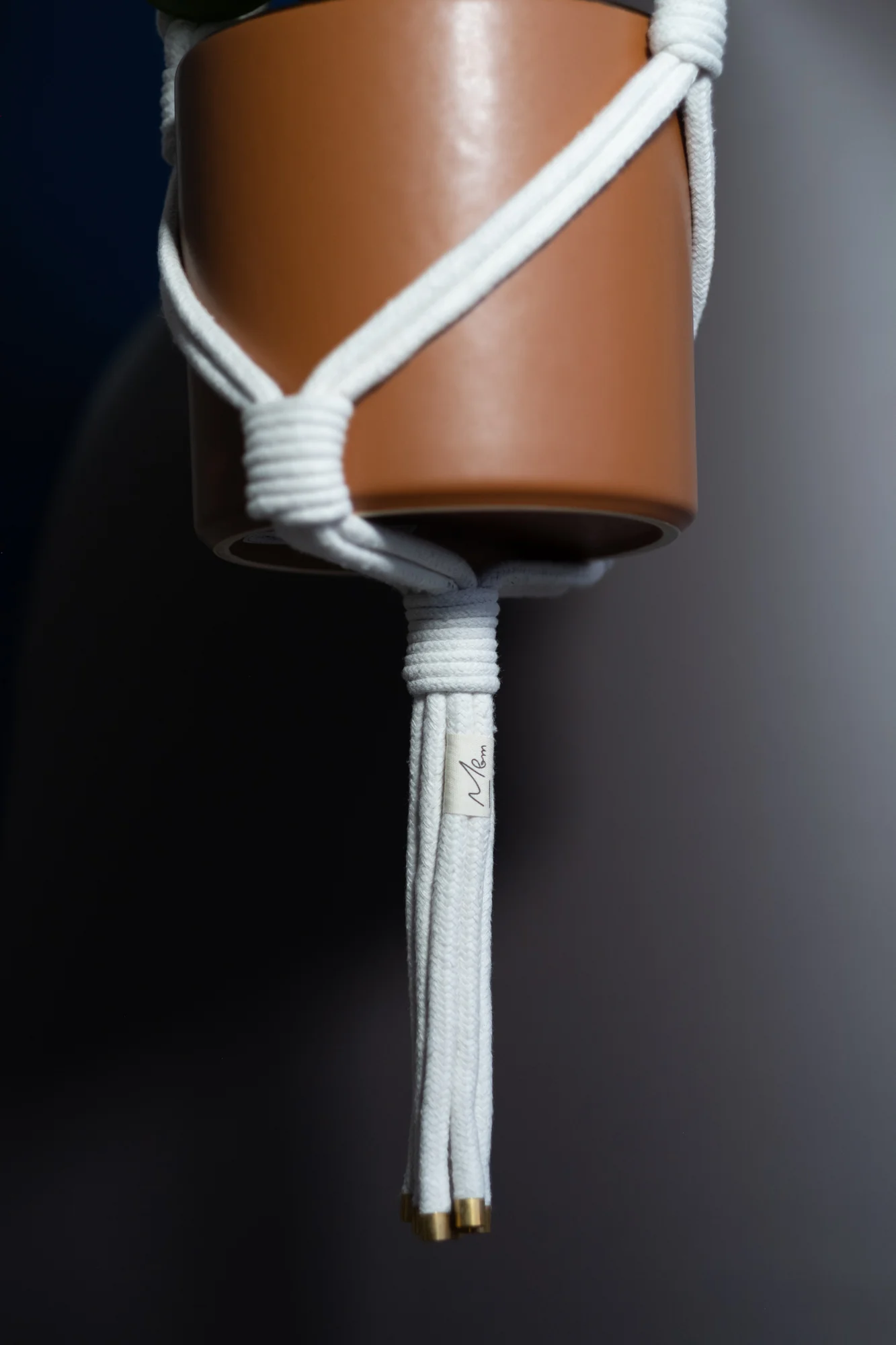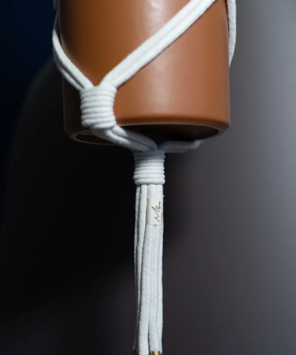 Ces deux torsades imposantes, véritables sculptures de corde, créent un jeu de volumes unique. Leur grande amplitude confère une sensation de mouvement, de dynamisme subtilement rompue par des touches dorées appliquées avec parcimonie.